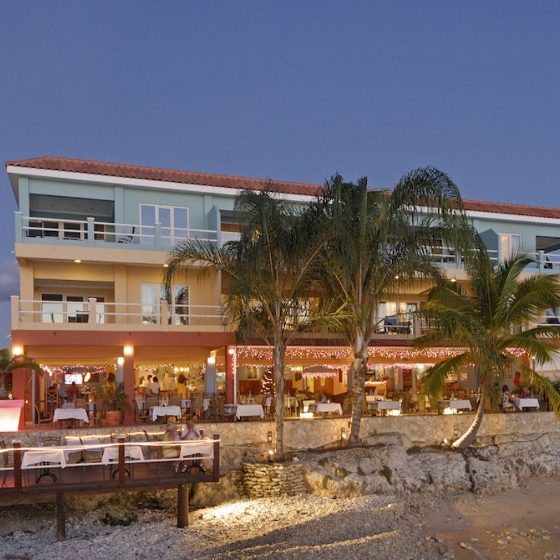 Die Anlage mit 16 Einheiten – direkt an Bonaires Westküste mit Blick auf die vorgelagerte Insel Klein Bonaire