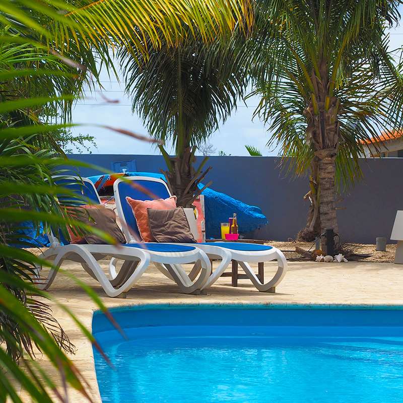 Ein modern ausgestattetes Zimmer mit Doppelbett, Klimaanlage, gemütlicher Sitzecke und Flatscreen TV bieten allen gewünschten Komfort. Wahlweise mit Blick über die Terrasse mit Pool oder zu ruhigen Straßenseite. Das elegante Badezimmer hat eine Dusche und warmes Wasser. Es sind ein elektronisches Schließfach und WLAN Internetzugang vorhanden. Strandtücher werden zur Verfügung gestellt und auf Wunsch wird die Minibar im Zimmer gefüllt. Die Zimmer werden tägliche gereinigt, die Bettwäsche wird 1 Mal pro Woche gewechselt. Auf Wunsch wird Bettwäsche gegen $10 pro Wechsel auch öfters getauscht.