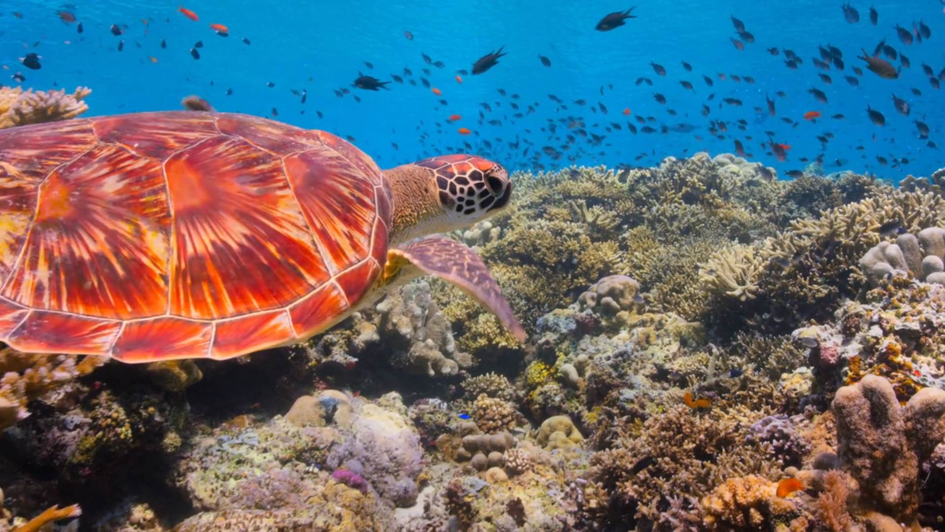 Achte auf den schmalen Kanal der ins Wasser führt, der Einstieg ist nicht ganz einfach aber er lohnt sich. Der Riffabhang beginnt in ca. 9 m und führt in eine Tiefe von 37 m. Blatt- und Weichkorallen sowie auch Schwämme sind am ganzen Riffabhang zu finden. Oft triffst du hier auf Schildkröten die sich von Schwämmen ernähren, manchmal hörst du auch wie die großen Papageienfische an den Hartkorallen knabbern.
